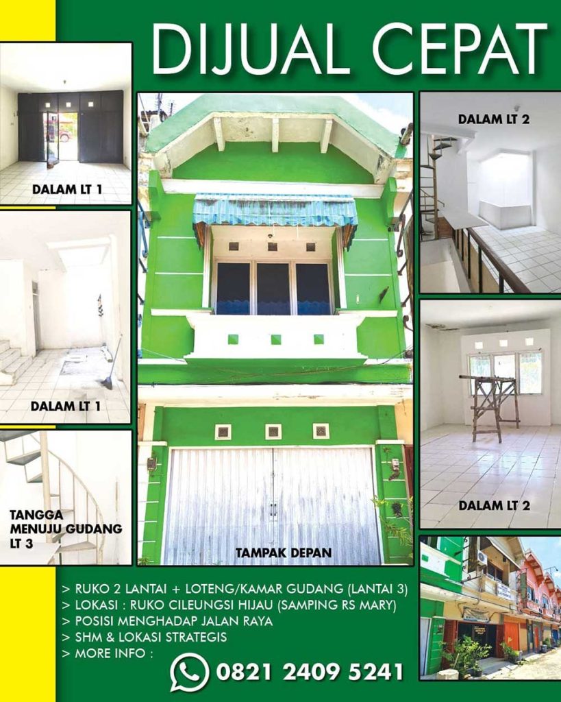 Bayangin punya ruko 3 lantai di pinggir jalan raya, bukan di gang yang Google Maps aja mikir dua kali buat masuk. Inilah Ruko Cileungsi Hijau, lokasi strategis tepat di samping RS Mary Cileungsi—rame, hidup, dan potensial. Cocok buat kantor, toko, klinik kecil, sampai usaha kuliner. Lantai paling atas bahkan bisa difungsikan sebagai gudang. Jadi stok barang aman, nggak numpuk di ruang tamu (istri aman, rumah tangga aman).